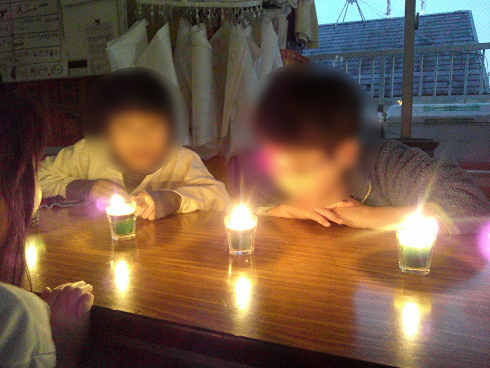 12月25日クリスマスの日、子どもたちが作ったロウソクに火を点けました。自分が作ったロウソクに明かりがともり、ゆらゆらとゆれる火の動きに子どもたちはみんなじっと見入っていました☆